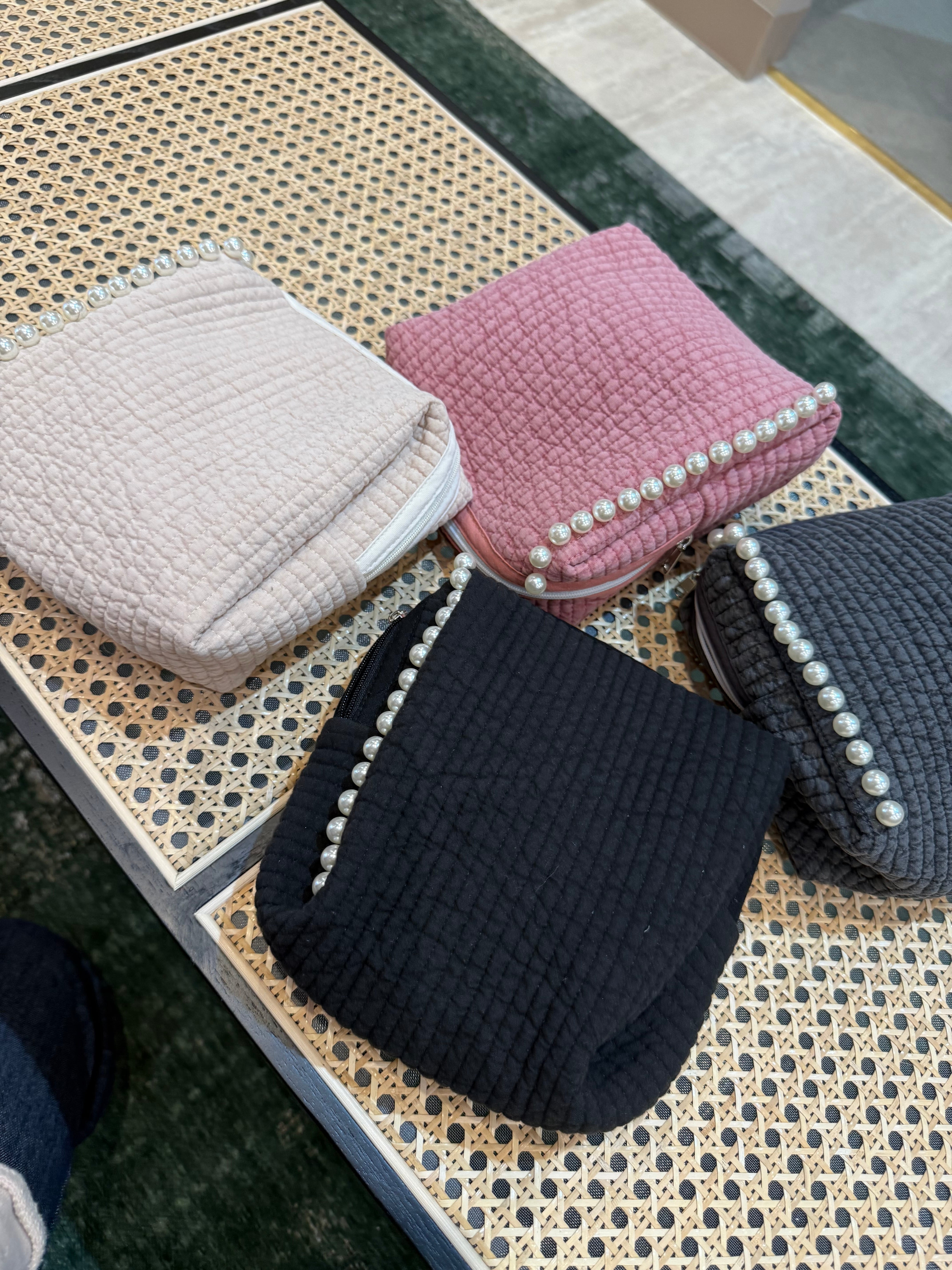 えりかちゃん専用 3点 ヌビ長方形パールポーチ ベージュ、チャコール、ピンク