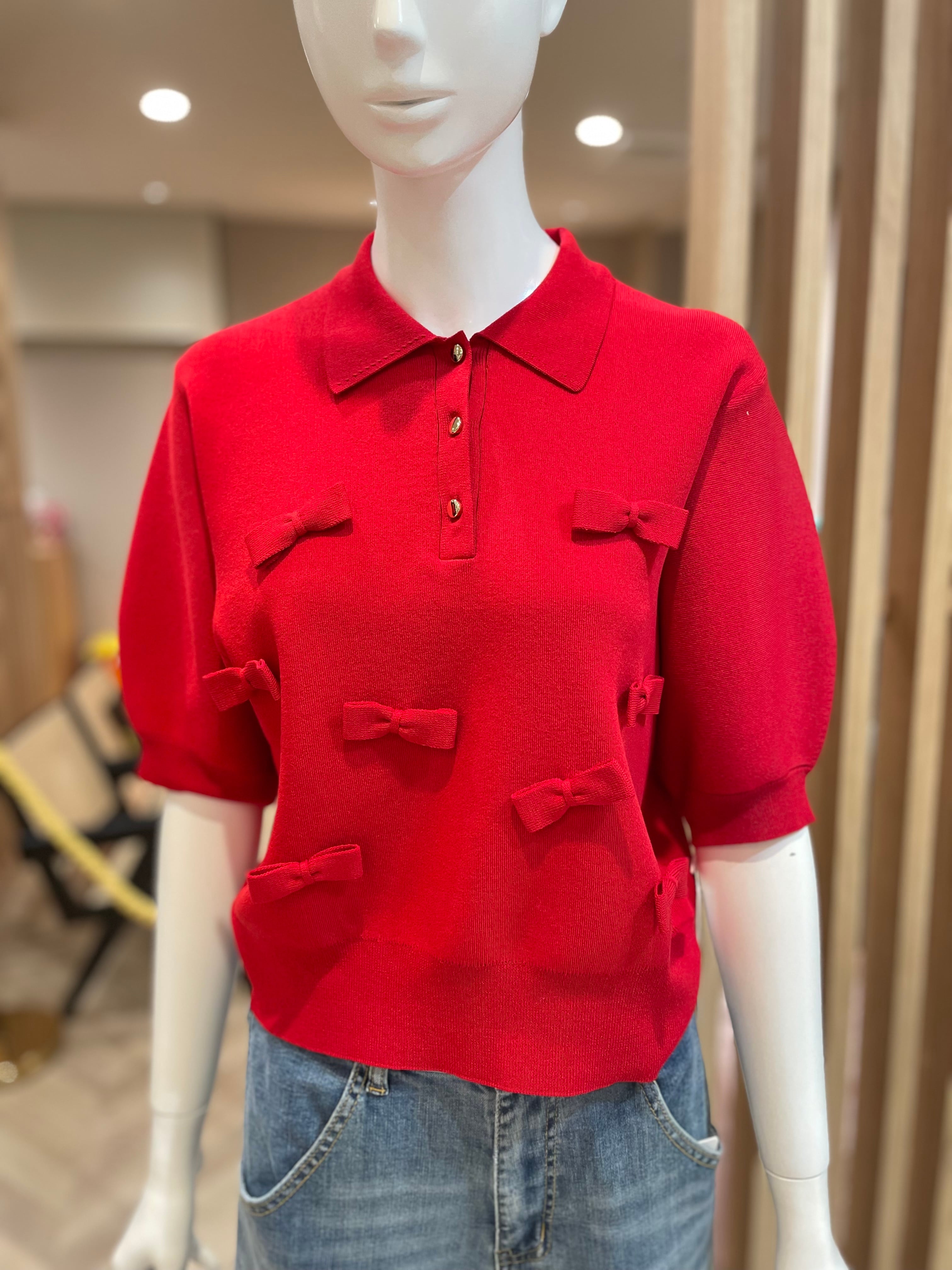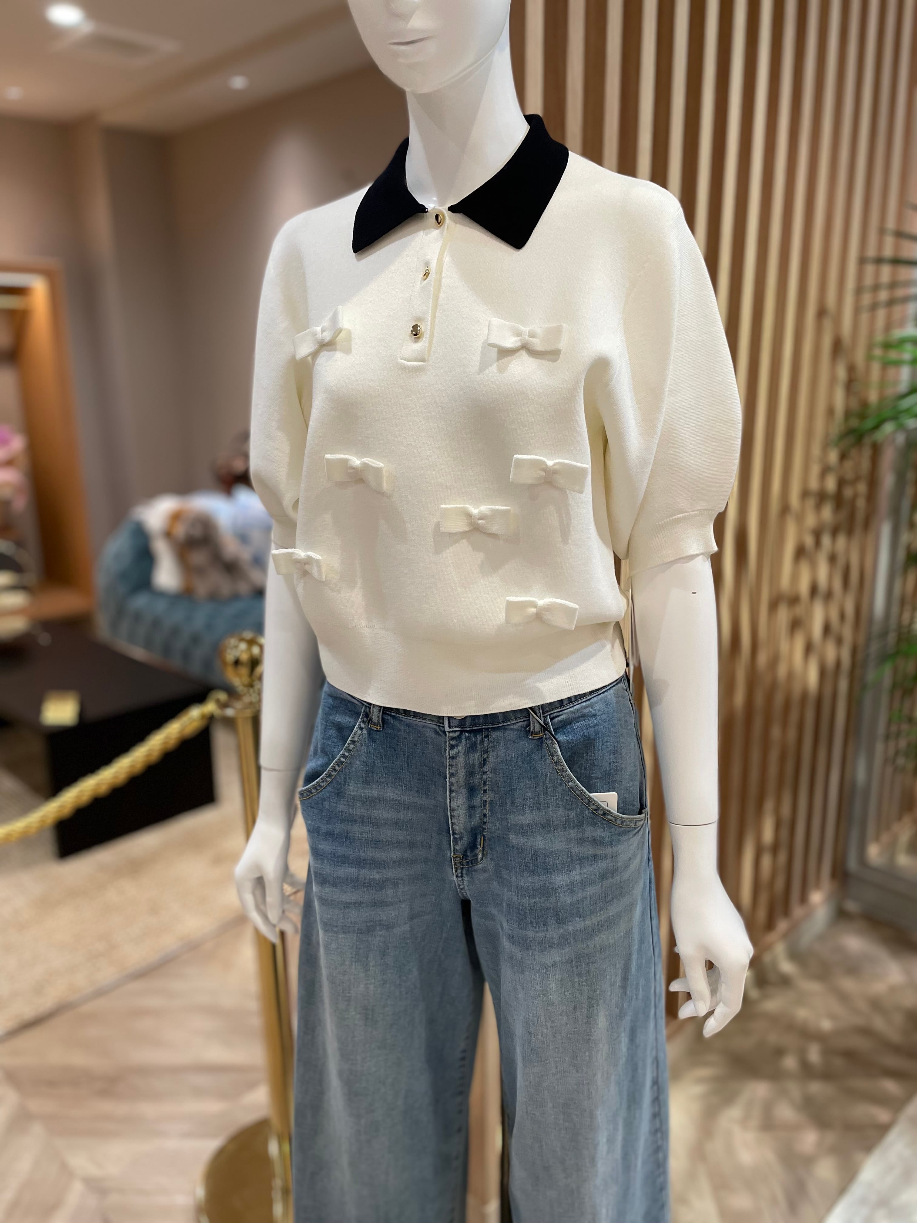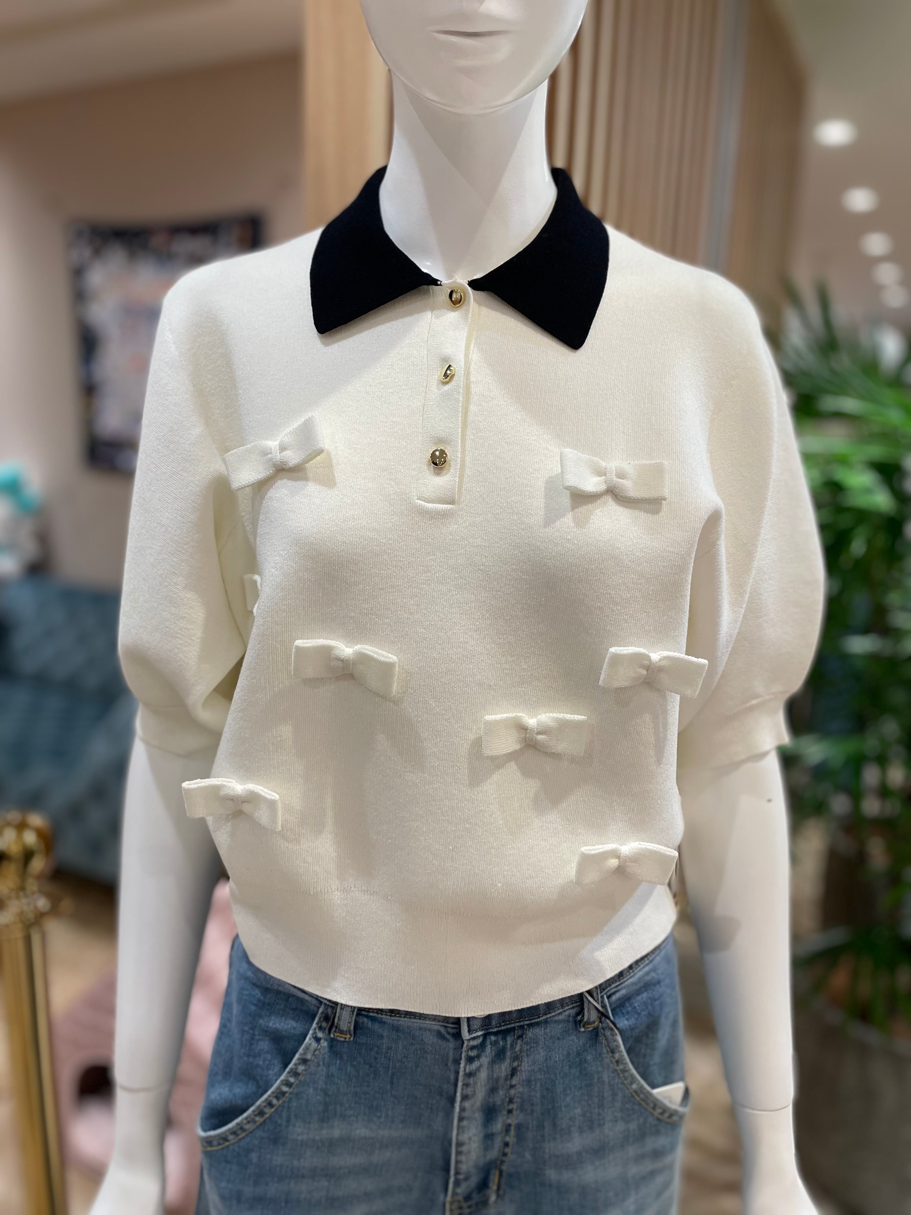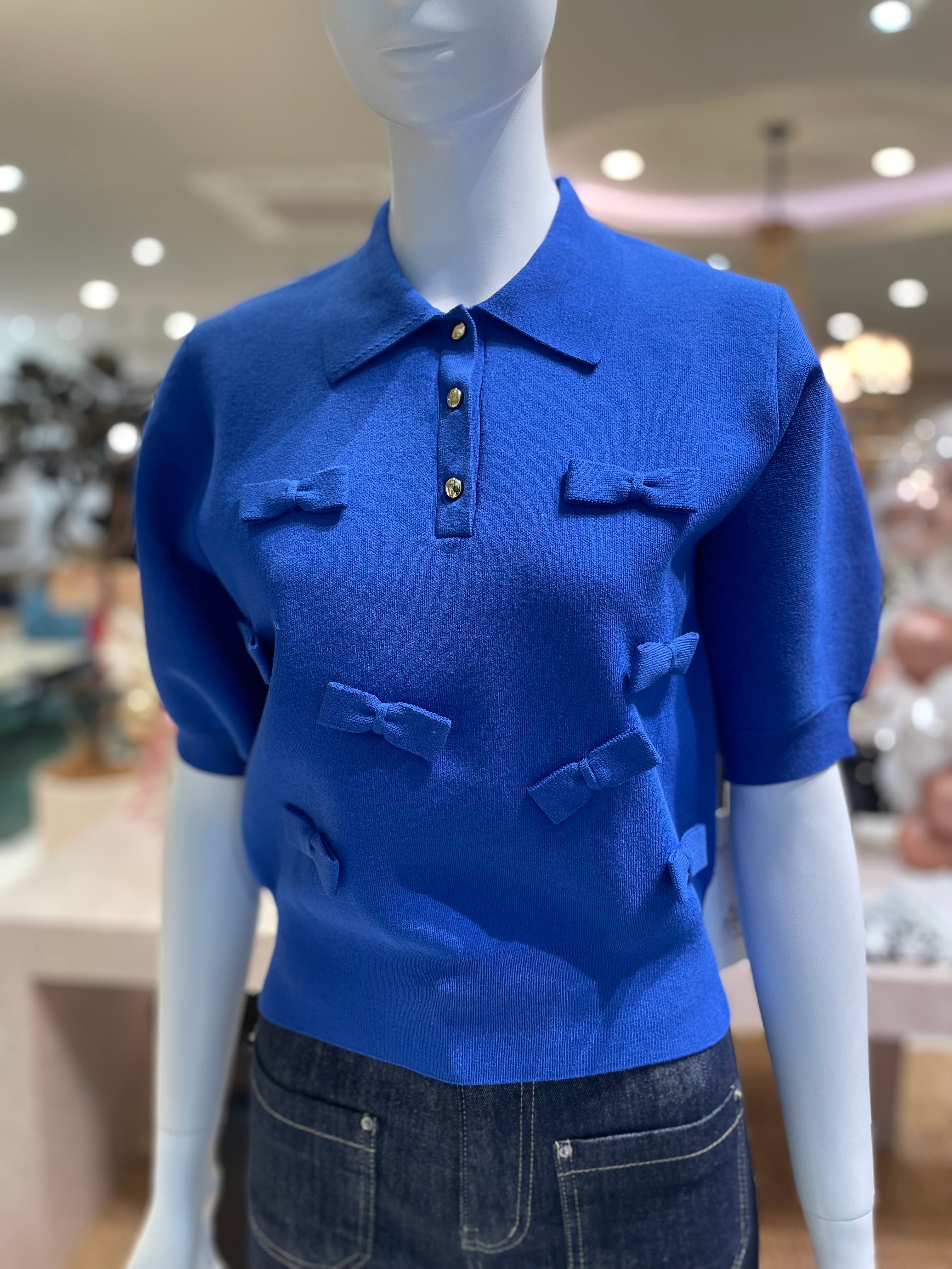 小さなリボンが散りばめられたポロニットトップス
