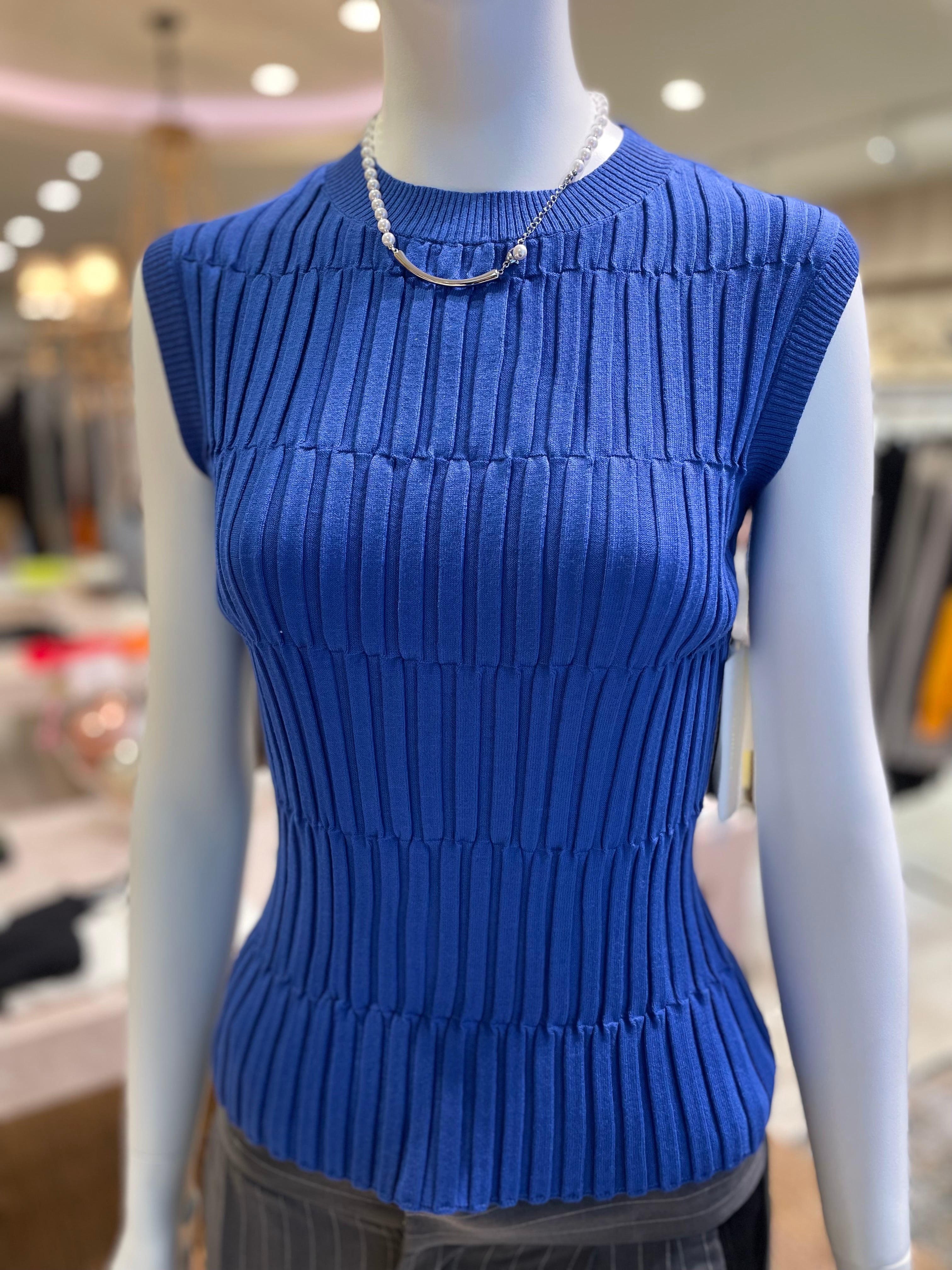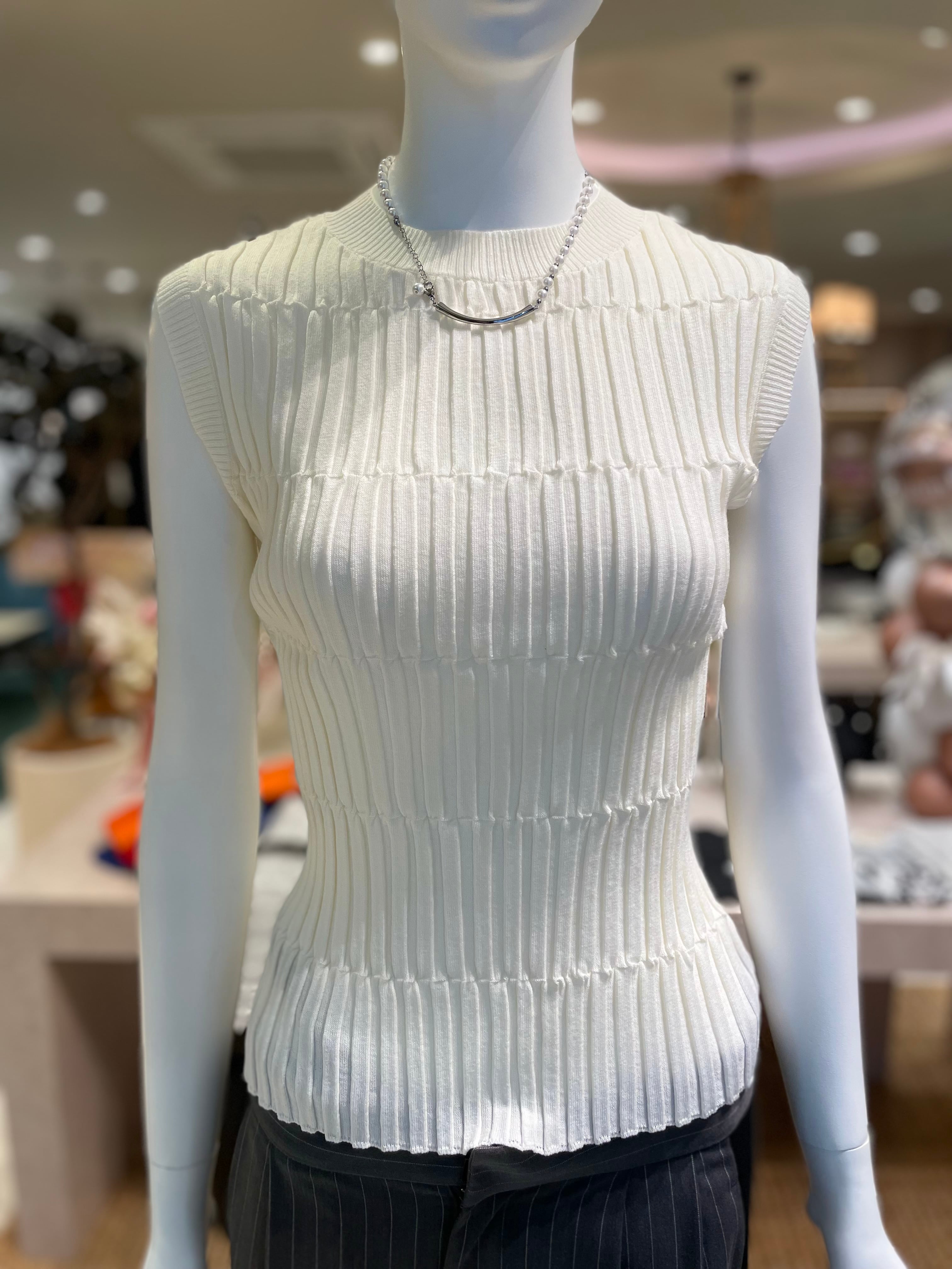 立体感のあるリブ編みが印象的なノースリーブニット。