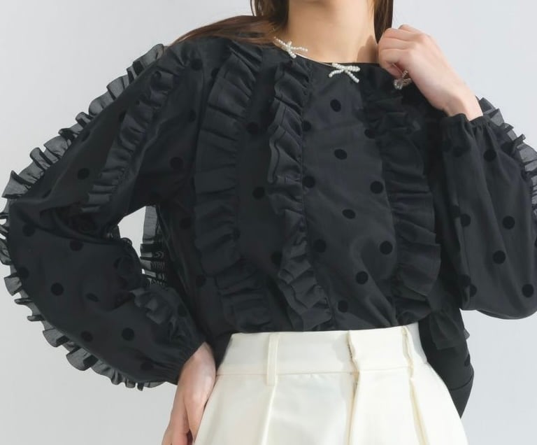 hkky_s_f様専用 ピッチン シアードットフリルブラウス ブラック 906100 | sayuselect