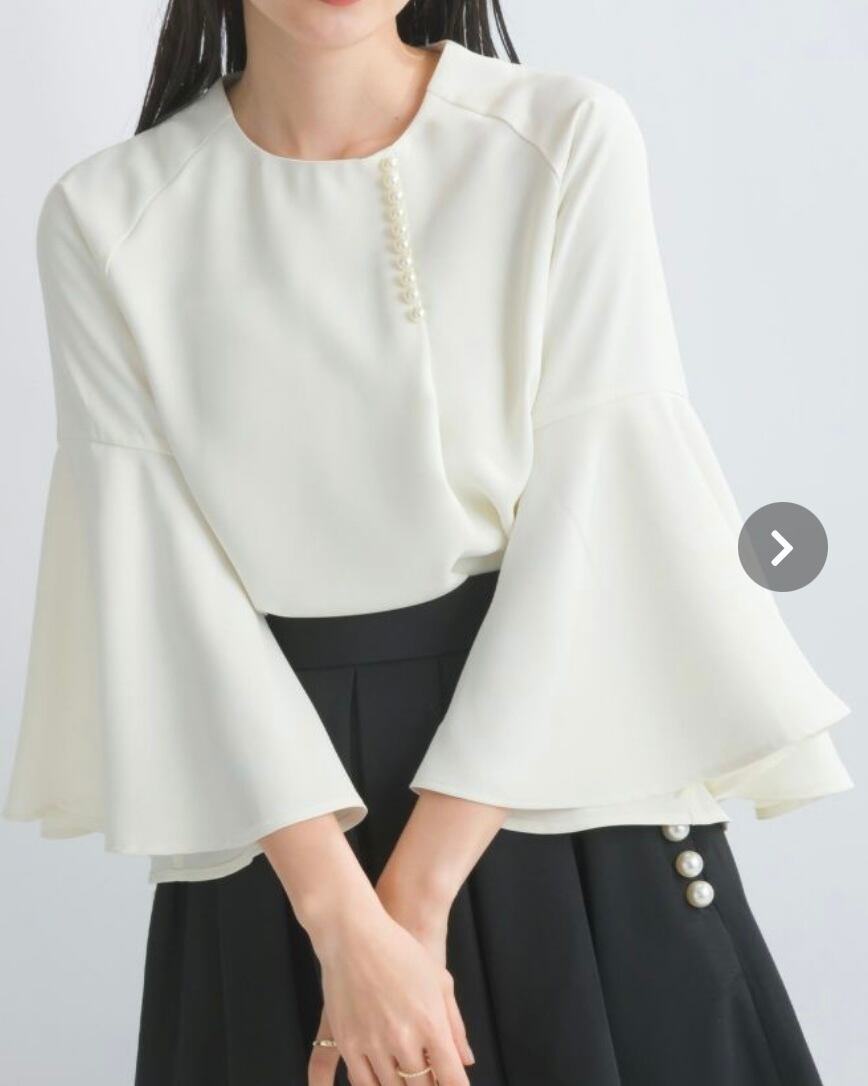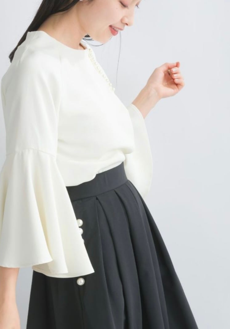 (piccn)フレアスリーブパールブラウス ホワイト